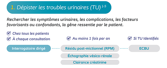 Si des troubles urinaires sont identifiés, il est recommandé de faire un ECBU pour identifier une infection urinaire sous-jacente