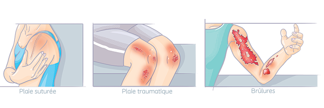 On parle de plaie dès que la peau est blessée ou endommagée, et ce qu’il y ait ou non une atteinte des tissus plus profonds. Cette atteinte cutanée peut avoir différentes origines1 :