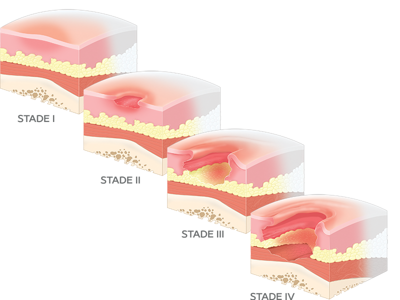 Les escarres sont généralement classées selon 5 stades de gravité, dont seuls les stades I et II sont réversibles :