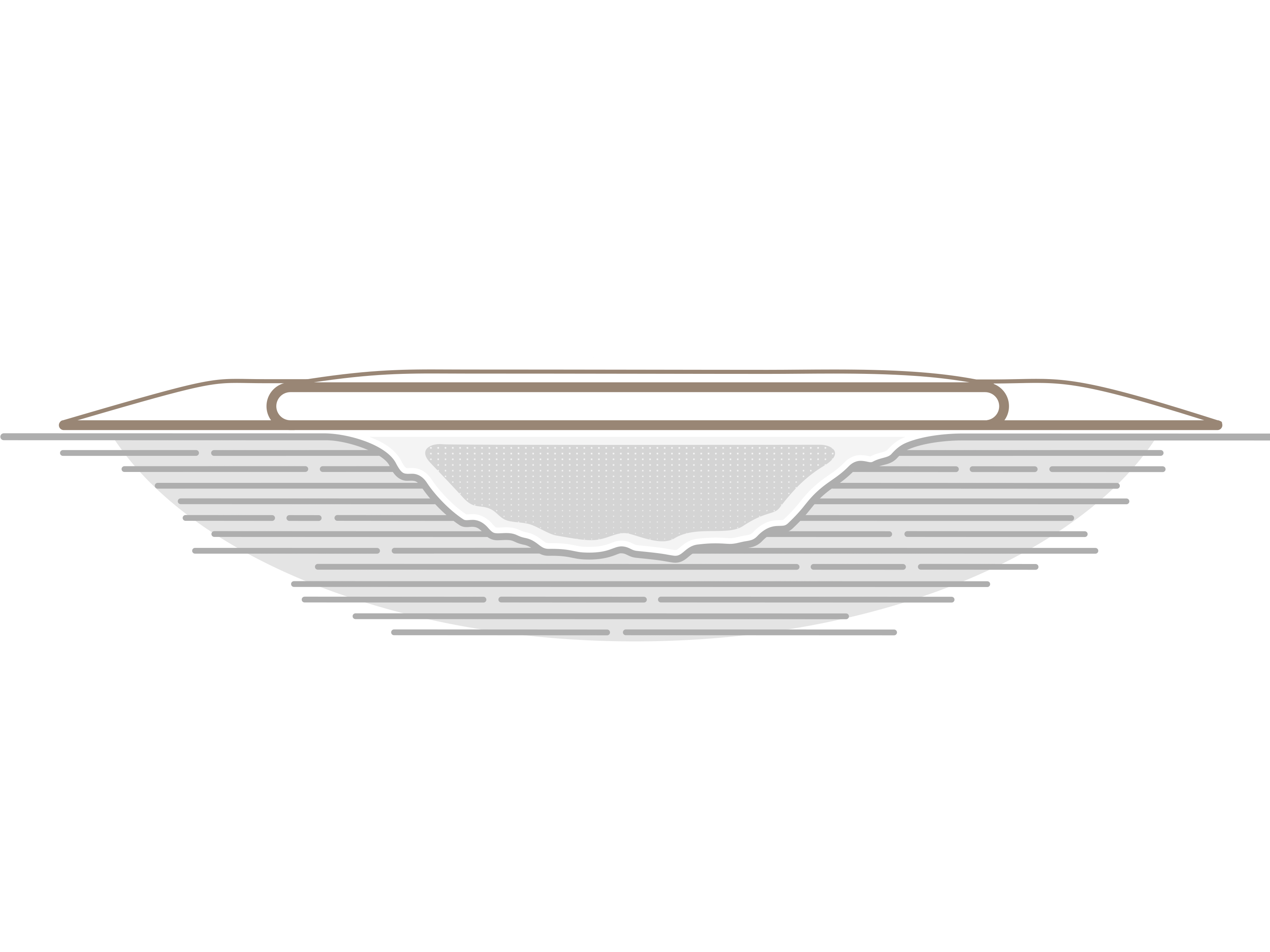 Dans le cadre de plaies avec des atteintes profondes, comme par exemple certains ulcères, une cavité peut apparaître sous les berges de la plaie. Cette cavité, si elle n’est pas suffisamment épousée par le pansement, peut alors elle aussi se transformer en espace mort3.