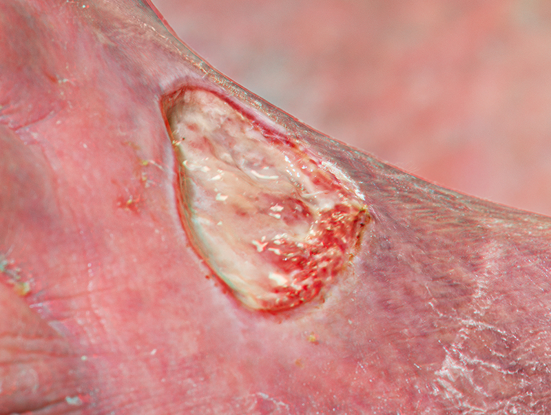 L’apparition d’un espace mort entre le pansement et le lit de la plaie va favoriser l’accumulation de l’exsudat. Les fuites de liquide en découlant vont induire une macération de la peau périlésionnelle, un élargissement de la plaie et un retard de cicatrisation.