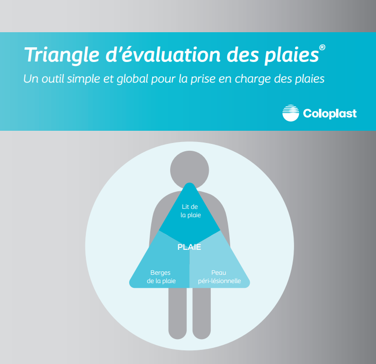 Dans le but d’aider les soignants dans leur pratique, Coloplast a développé un outil d’évaluation donnant un cadre simple et structuré incluant l’ensemble de ces facteurs : le Triangle d’évaluation des plaies.